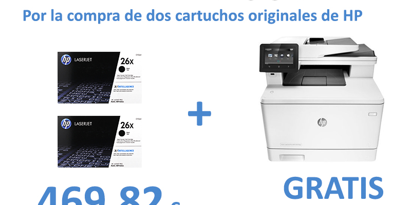 Con la llegada del mes de Mayo empiezan a florecer los nuevos regalos de OfficeXpress. Por eso, si adquieres dos cartuchos originales de HP, cuyo coste es de 469€, te REGALAMOS un dispositivo Multifunción Monocromo A4, ahorrando 295€ en costes de impresión.